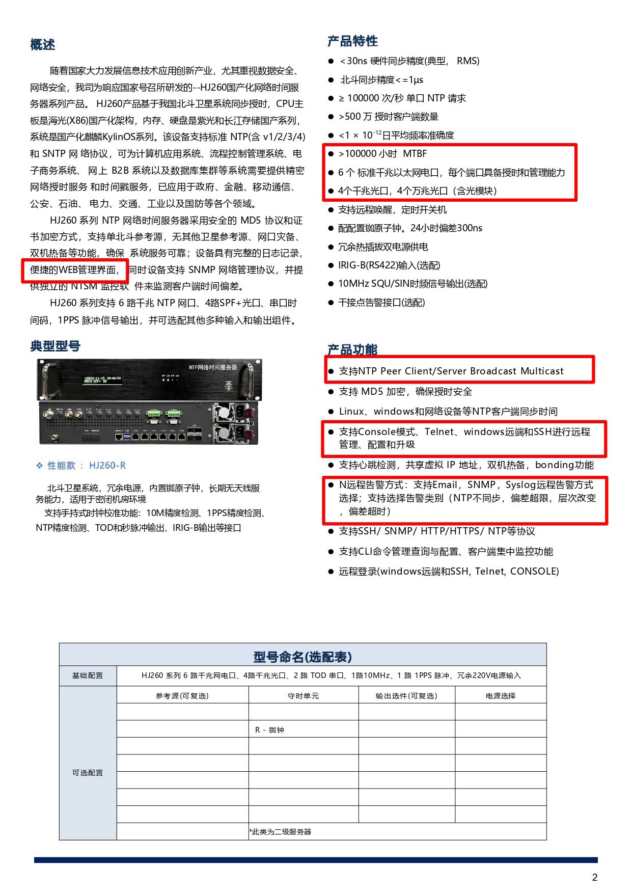 随着国家大力发展信息技术应用创新产业,尤其重视数据安全、 网络安全,我司为响应国家号召所研发的--HJ260国产化网络时间服 务器系列产品。...
