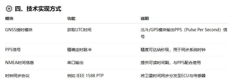 所有传感器时间戳均参考GNSS时间,使感知算法(Sensor Fusion)在统一时基下工作。